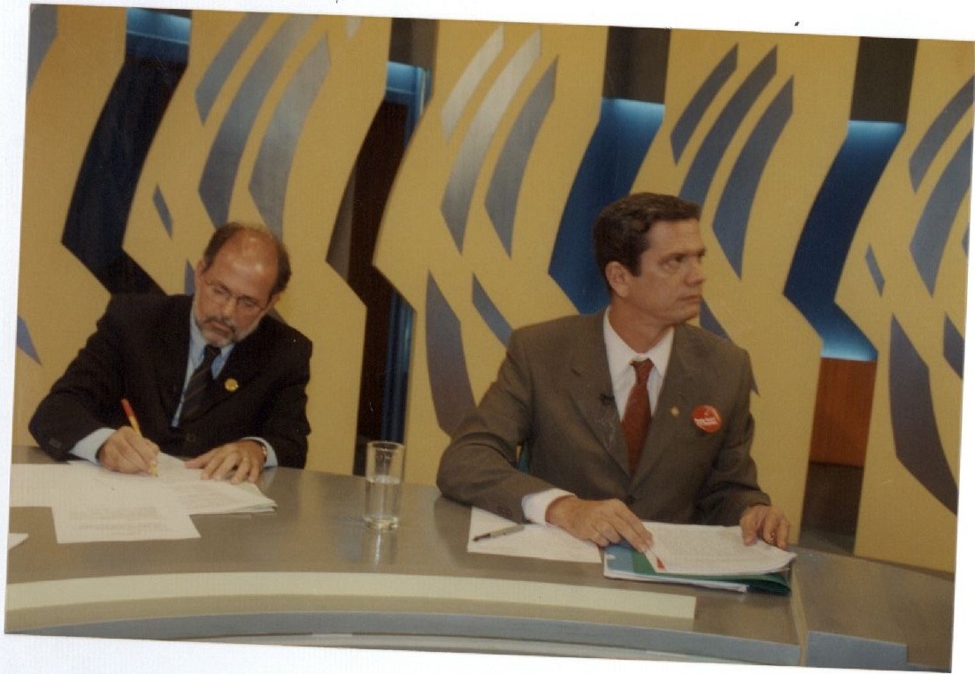 | Description: | Fotografia em cores que mostra personalidades atendendo a um debate realizado na TV Universitária Recife. A fotografia foi registrada pelo fotógrafo Passarinho. |