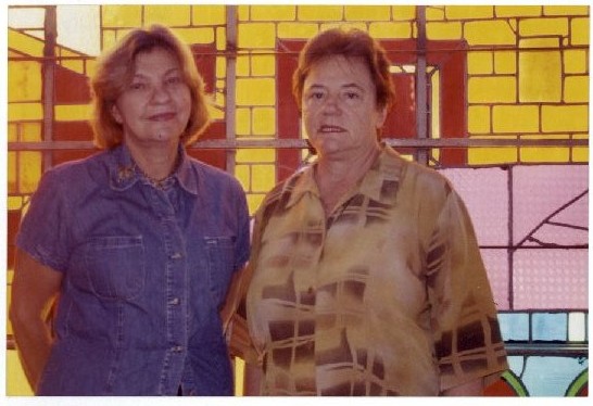 | Title: | Ana Maria Ferracin, diretora do Sistema de Bibliotecas, e uma personalidade não identificada em frente ao Vitral da BC |