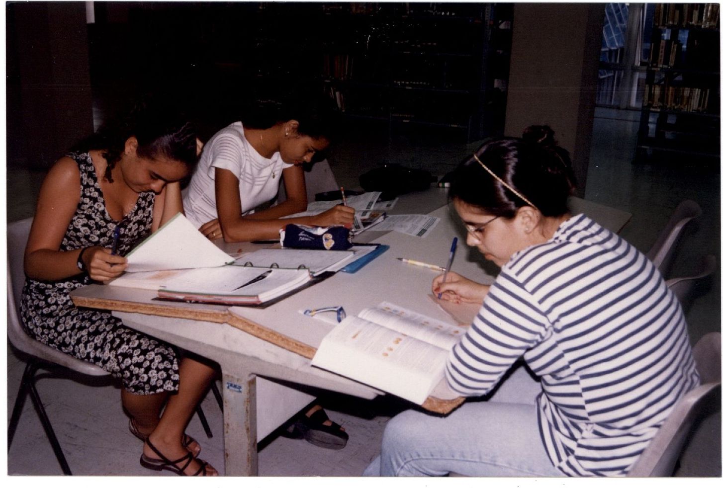 | Description: | Fotografia em cores onde é possível visualizar discentes estudando em uma mesa localizada na Biblioteca Central da UFPE. No verso da foto encontram-se as seguintes informações: "foto Passarinho, biblioteca central; S. Bibi. C". |