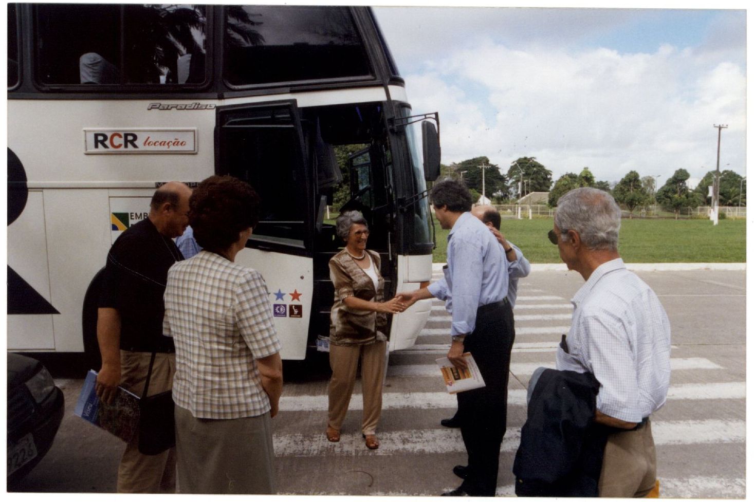 | Description: | Fotografia em cores onde é possível visualizar o Reitor Mozart Neves Ramos cumprimentando uma personalidade não identificada; junto a eles, visualiza-se outras personalidades. |