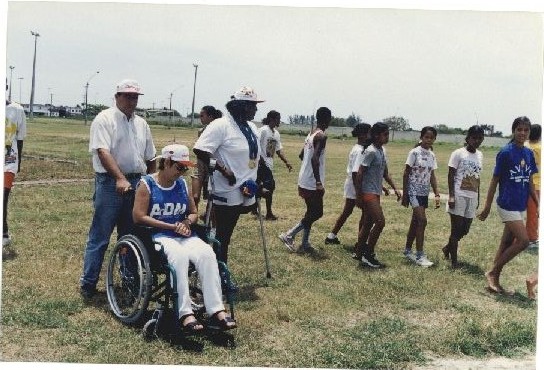 | Description: | Fotografia em cores onde é possível visualizar diversas pessoas, dentre elas duas personalidades com algum tipo de deficiência física. No verso da fotografia constam as seguintes informações “Assessoria de COM SOCIAL – UFPE; Nome: Ed Física e Desporto; Evento/Pessoa: Pronid; Fotógrafo: Maurício Coutinho”; Nov. 2000.” |