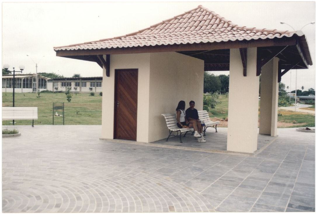 | Description: | Fotografia em cores onde é possível visualizar duas personalidades não identificadas sentadas em um banco localizado em um ambiente coberto existente na Pisca de Cooper. |