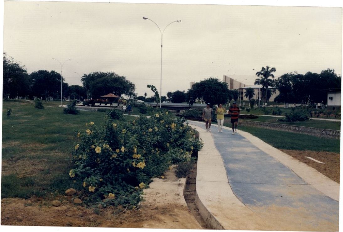 | Description: | Fotografia em cores onde é possível visualizar pessoas caminhando na Pista de Cooper e, ao fundo, tem-se uma visão do Centro de Convenções. |