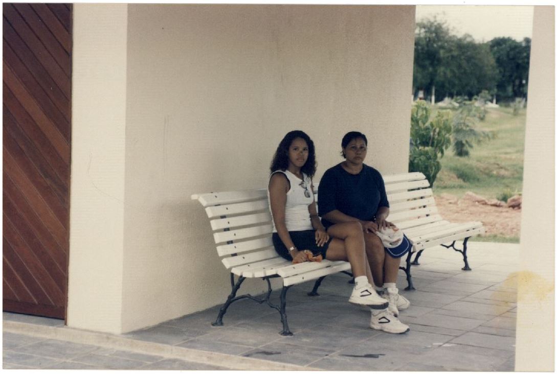 | Description: | Fotografia em cores onde é possível visualizar duas personalidades não identificadas sentadas em um banco localizado em um ambiente coberto existente na Pisca de Cooper. No verso da foto consta a seguinte informação escrita a lápis: “Pista de Cooper”. |