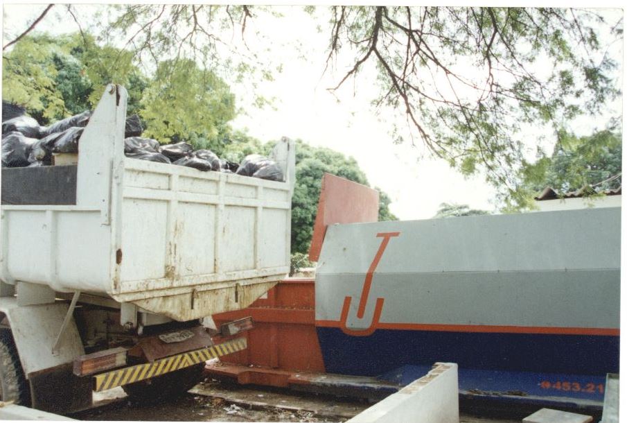 | Descripción : | Fotografia em cores onde é possível ver a parte traseira de um caminhão caçamba de lixo e partes da lateral de um compressor de lixo. No verso da foto consta um adesivo da ASCOM com a seguinte informação: "Assessoria de Com. Social - UFPE; Nome: Lixo – UFPE; Evento/Pessoa; Fotógrafo: Raquel Santana”. |