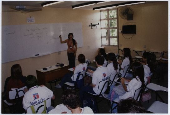 | Description: | Fotografia em cores que registra o interior de uma sala de aula, sendo possível visualizar diversos alunos e uma personalidade não identificada ministrando a aula. No verso da foto consta um adesivo da ASCOM com as seguintes informações: “Assessoria de Com. Social – UFPE; Nome:; Evento/Pessoa: Alunos - CAP; Fotógrafo: Bernardo Cortijo; 16/02/06”. |