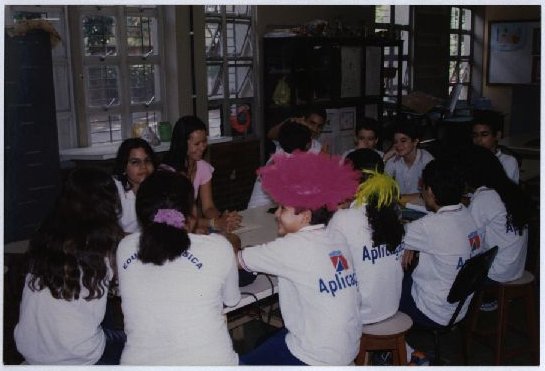 Descripción : Fotografia em cores onde é possível visualizar um grupo de alunos participando de uma aula ministrada por uma personalidade não identificada. No verso da foto consta um adesivo da ASCOM com as seguintes informações: “Assessoria de Com. Social – UFPE; Nome:; Evento/Pessoa: Alunos - CAP; Fotógrafo: Bernardo Cortijo; 16/02/06”.