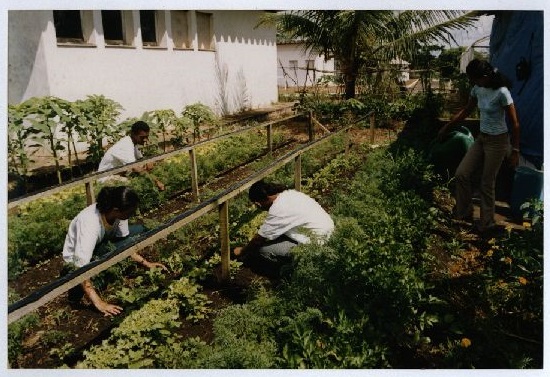 Descripción : Fotografia em cores de alunos do CAP cultivando a plantação do Projeto Campo da Sementeira do Colégio Aplicação em Glória de Goitá. No verso das fotos consta um adesivo da ASCOM com as seguintes informações: “Assessoria de Com. Social – UFPE; Nome: Proj. Campo da Sementeira/;Evento/Pessoa: Colégio Aplicação em Glória de Goitá – PE; Fotógrafo: Aquiles Lins”.