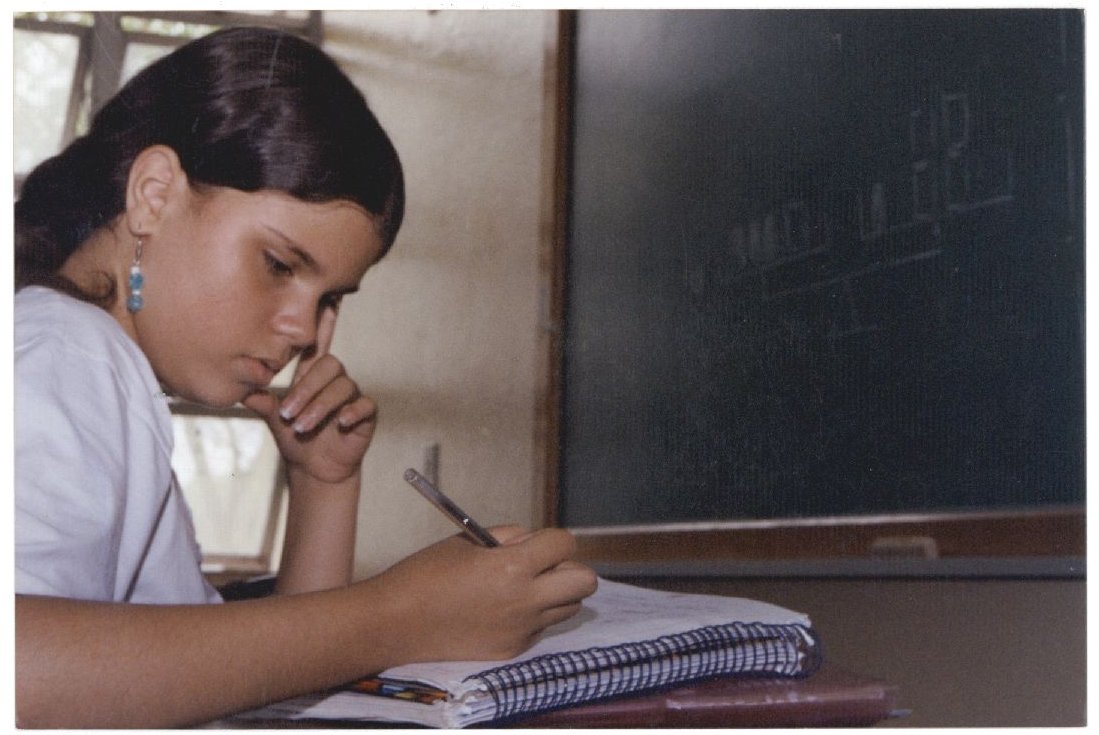 | Description: | Fotografia em cores onde é possível visualizar uma jovem em momento de estudo em uma aula de matemática. No verso da foto consta um adesivo da ASCOM com as seguintes informações: “Assessoria de Com. Social – UFPE; Nome; Colégio Aplicação; Evento/Pessoa: Pesquisa em matemática; Fotógrafo: Bárbara Wagner; 06.03.02”. |