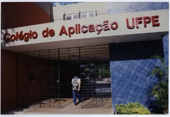| Descrição: | Fotografia em cores onde é possível visualizar a fachada do Colégio de Aplicação. No verso da foto há um carimbo com as seguintes informações: “ASSESSORIA DE COM. SOCIAL – UFPE;Nome; Evento/Pessoa: Alunos – CAP; Fotógrafo: Bernardo Cortizo”. |