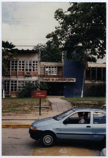 | Descrição: | Fotografia em cores onde é possível visualizar a fachada do Colégio de Aplicação, bem como um carro que, no momento da fotografia, passava em frente ao prédio. |
