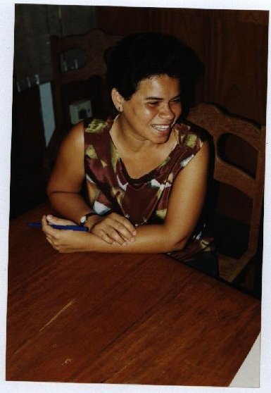 Descrição: Fotografia em cores da servidora Vânia do Projepe. No verso das fotos consta um adesivo da ASCOM com as seguintes informações: “ Assessoria de Com. Social; Nome: Centro de Educação; Evento/Pessoa: Servidora Vânia (Bolsas Projepe); Fotógrafo: Mila Targino; Jan. 2001”.