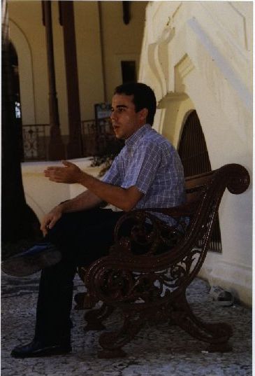 | Description: | Fotografia em cores onde é possível visualizar uma personalidade, identificada como Carlos, sentado em um banco, esta estando em momento de fala. No verso da foto consta um adesivo da ASCOM com a seguinte informação: “Assessoria de Com. Social – UFPE; Nome: Faculdade de Direito - Carlos; Evento/Pessoa Presídios - Carlos; Fotógrafo: Mila Targino; Nov.2001”. |
