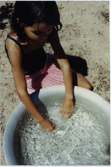 | Description: | Fotografia em cores onde é possível visualizar uma criança de nome não identificado com ambas as mãos dentro de uma bacia com água. No verso da foto consta um adesivo da ASCOM com a seguinte informação: “Assessoria de Com. Social – UFPE; Nome: CCSA – Dep. Serviço Social; Evento/Pessoa: Prof. Ana Àrcoverde; Fotógrafo: Mila Targino; Custódia; Nov. 2001”. |