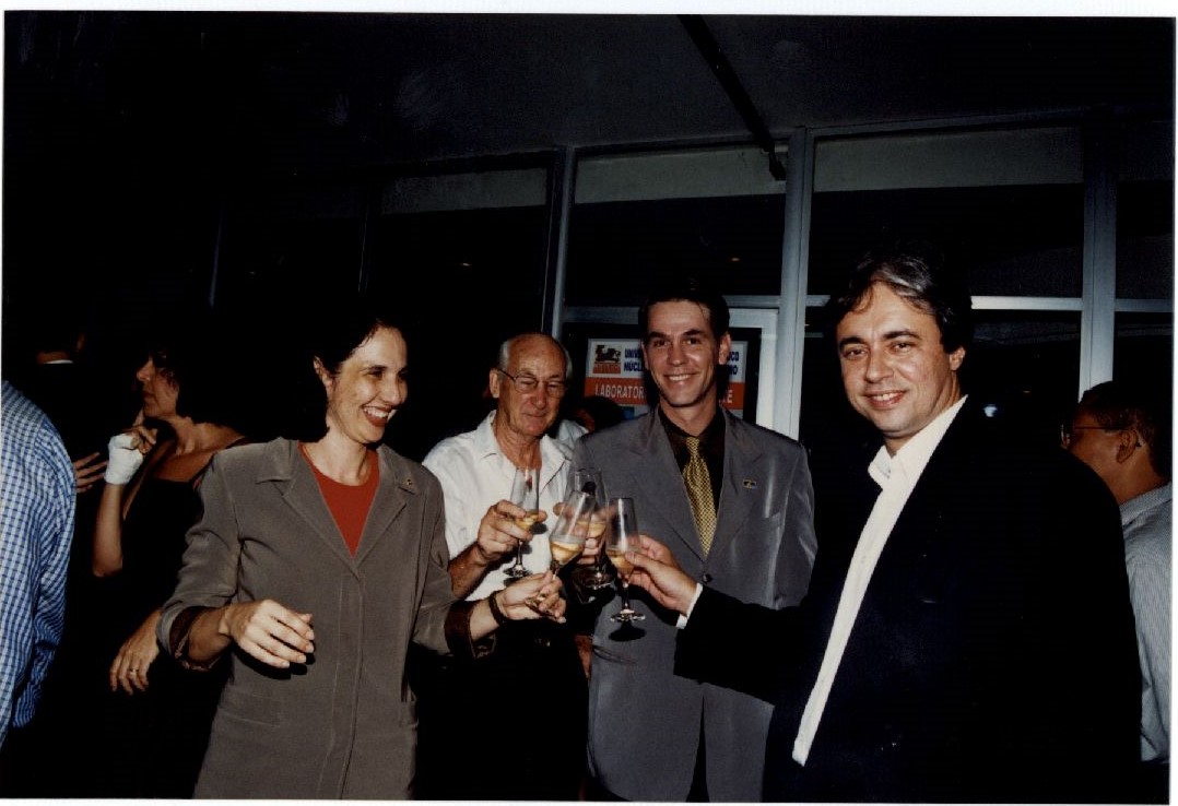 | Description: | Fotografia em cores do brinde entre o Reitor Mozart Neves e personalidades no Laboratório de Restaurante |