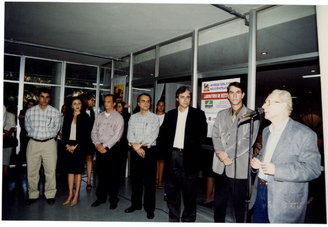 | Description: | Fotografia em cores do Reitor Mozart Neves na frente ao Laboratório de Restaurante do Núcleo de Hotelaria e Turismo, enquanto uma personalidade fala ao microfone |