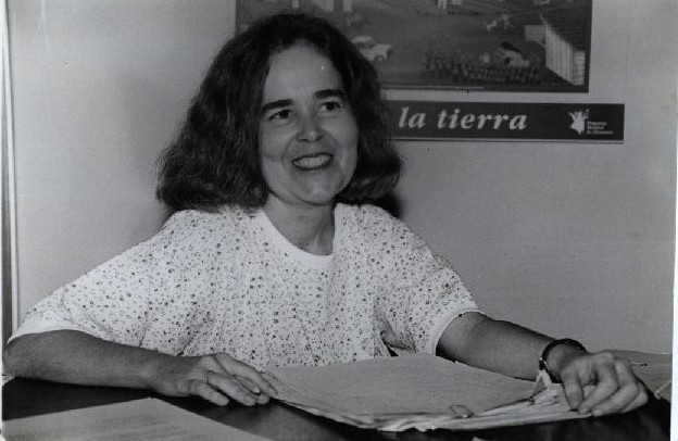 Descrição: Fotografia em preto e branco onde é possível visualizar uma personalidade identificada como Professora Mônica Serqueira. No verso da foto consta a seguinte informação escrita à caneta: “ Professora Mônica Serqueira (Nutrição)”.