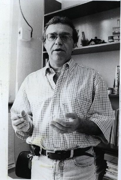 Descrição: Fotografia em preto e branco onde é possível visualizar uma personalidade identificada como Pedro Jorrael. No verso da foto consta a seguinte informação escrita à caneta: “Nutrição; CCS; Pedro Jorrael”.