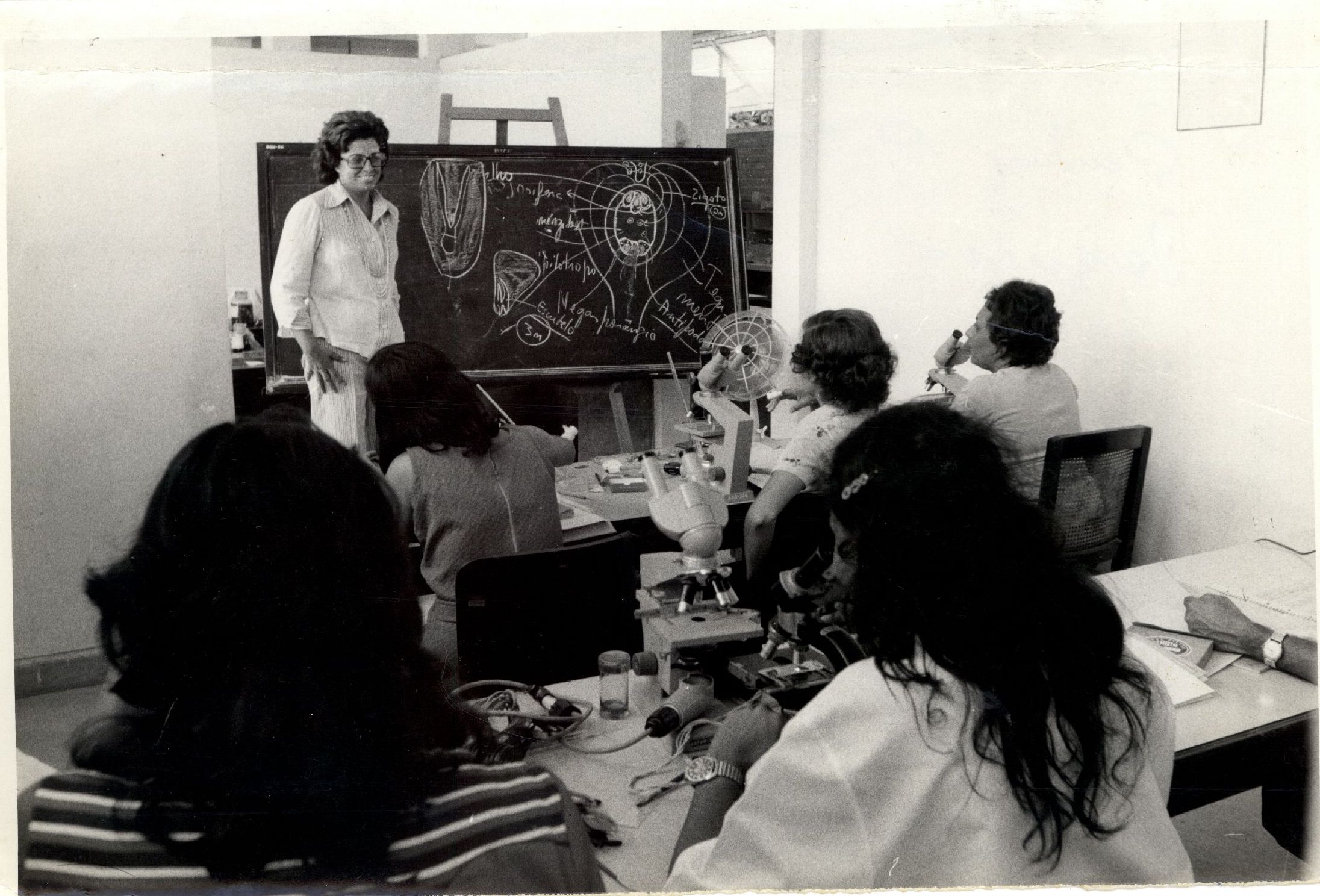 | Descrição: | Fotografia em preto e branco onde é possível visualizar Aluno e professores em sala de aula com alguns equipamento laboratoriais. No verso da fotografia encontram-se as seguintes informações:"centro C. saúde, pesqueira; 13\2 cent. De largura, D. 10 J.CI”. |