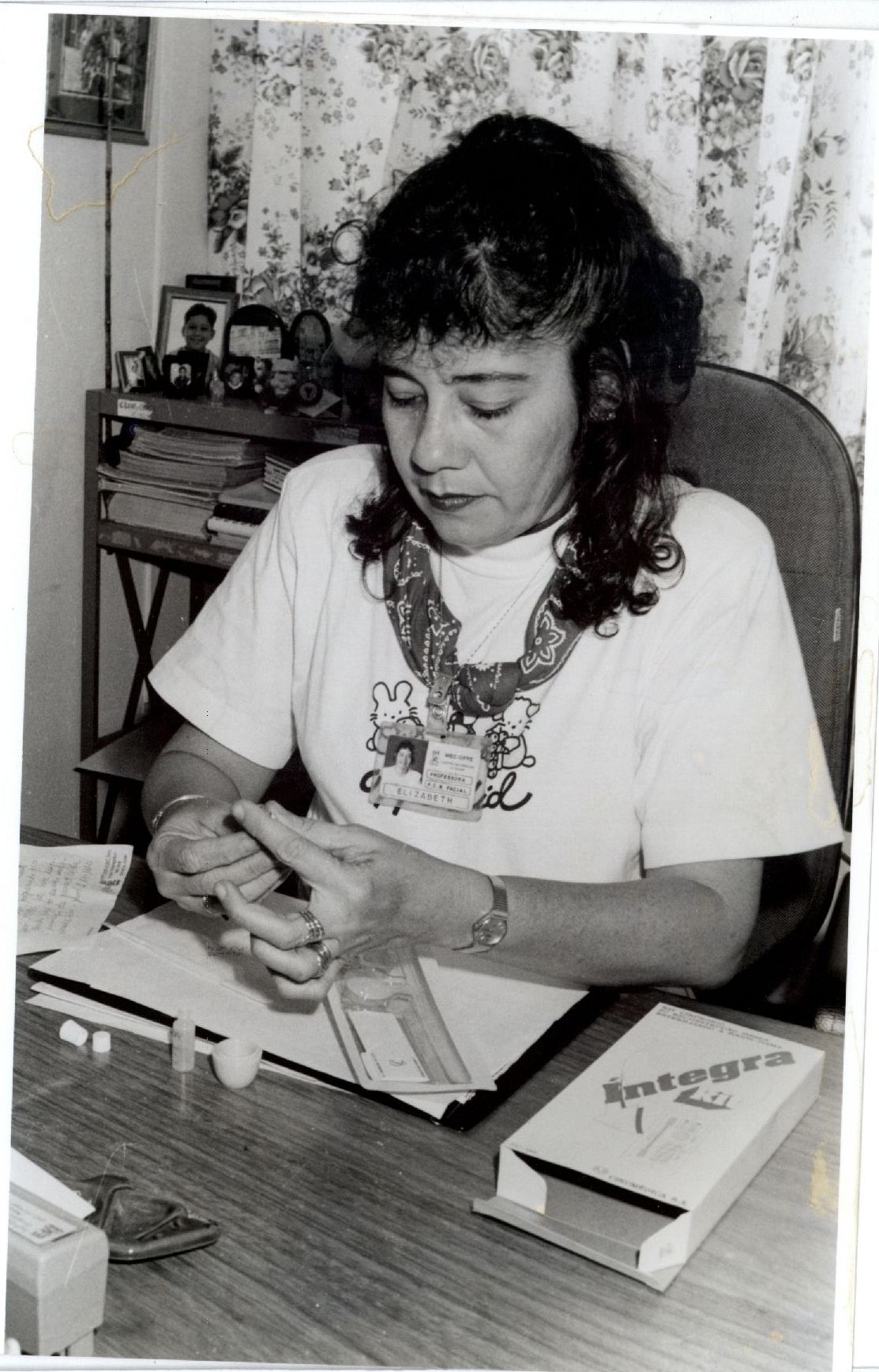 Descrição: | Fotografia em preto e branco onde é possível visualizar a pesquisadora identificada como Elizabeth Arruda. |
