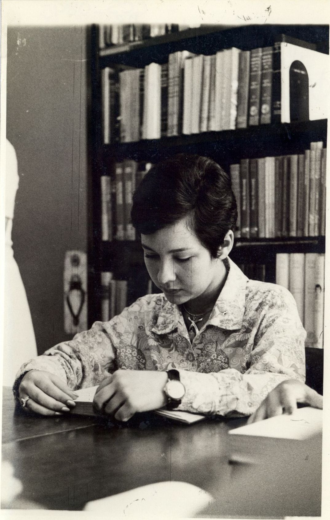 Descripción : | Fotografia em preto e branco onde é possível visualizar uma estudante não identificada no interior da Biblioteca de Enfermagem da UFPE. No verso da foto encontram-se as seguintes informações: “ 9 cent. de largura D-1; na madeira, na biblioteca enfermagem dezembro 1971.”. |