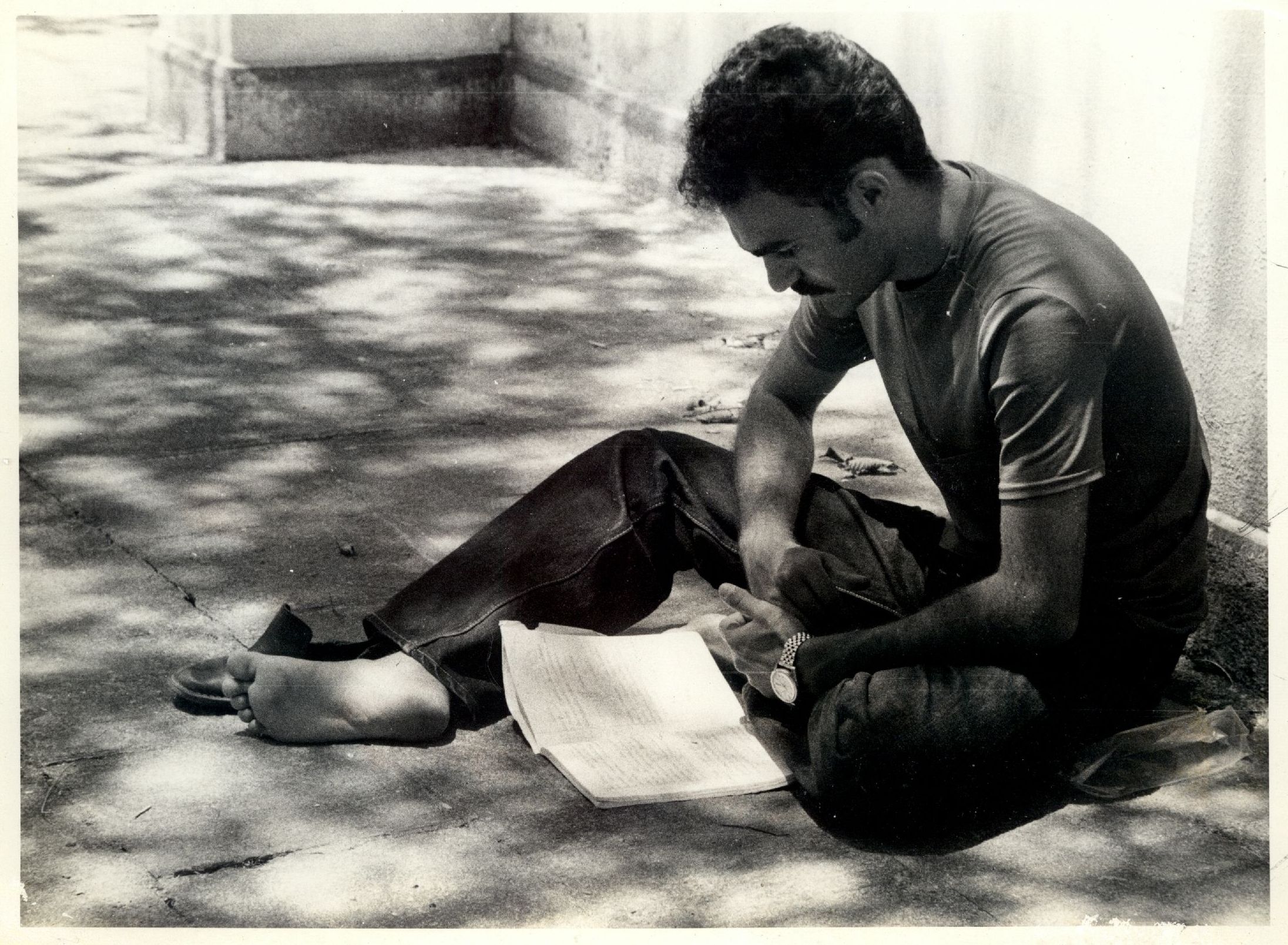 Descrição: | Fotografia em preto e branco onde é possível visualizar um estudante não identificado sentado no chão em momento de leitura. No verso da foto encontram-se as seguintes informações: ”estudante isolado portão da faculdade de medicina vestibular”. |