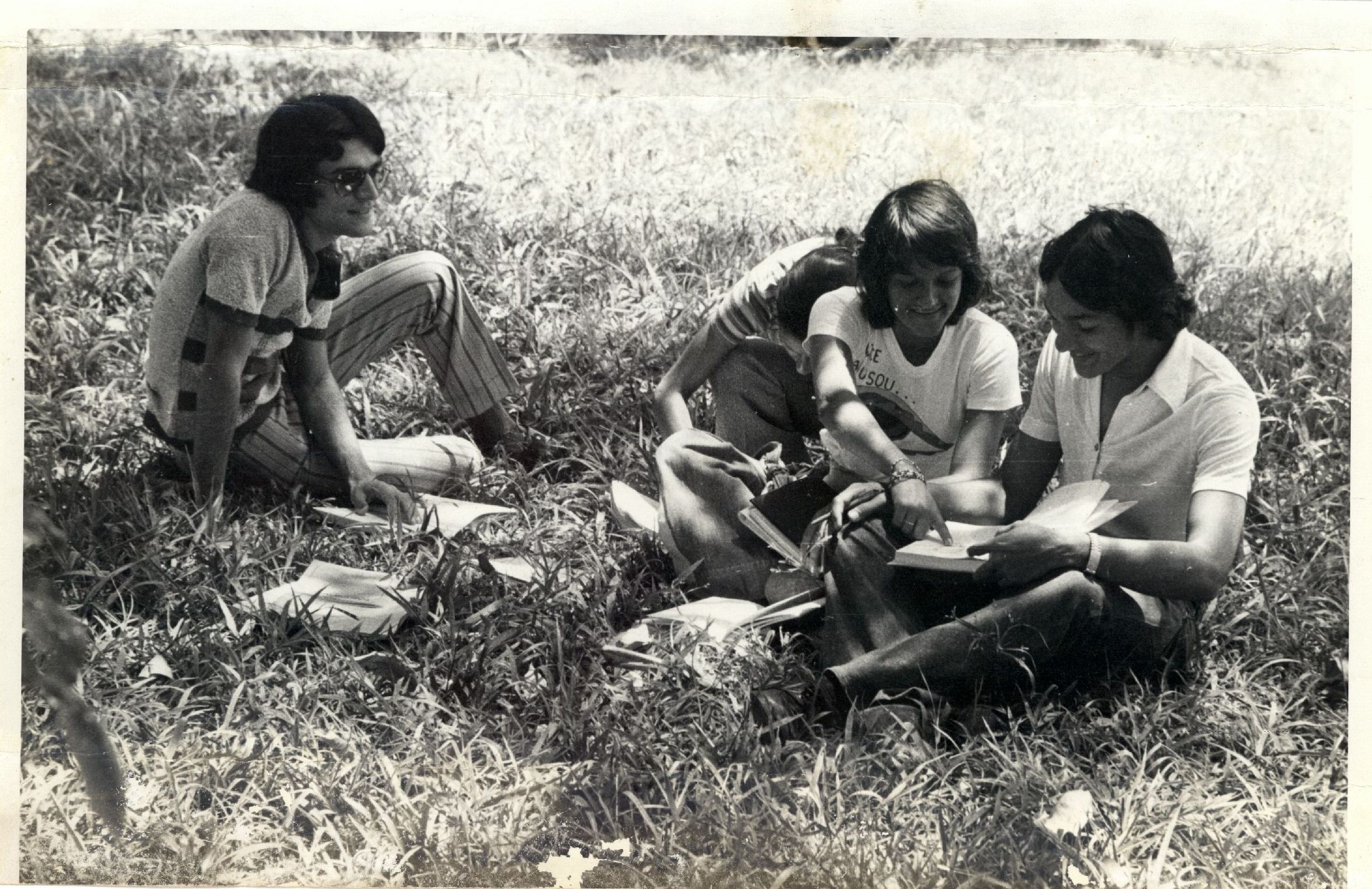 Descripción : | Fotografia em preto e branco onde é possível visualizar um grupo de estudantes na grama em momento de leitura - Faculdade de Medicina. No verso da foto encontram-se as seguintes informações:“estudantes em grupo na faculdade de medicina”. |