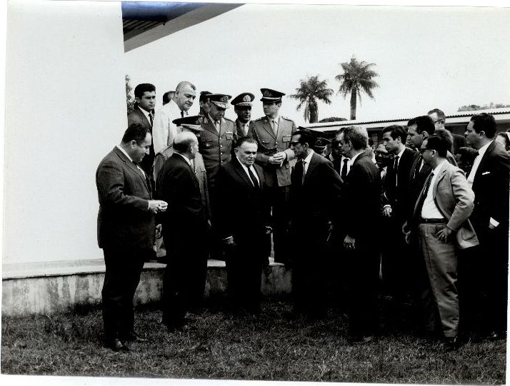 Título: | Presidente Castelo Branco, Reitor Murilo Guimarães e outras personalidades em área externa da Universidade |
