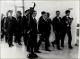 Description: | Fotografia em preto e branco onde é possível visualizar Presidente Castelo Branco, Reitor Murilo Guimarães e outras personalidades caminhando em área interna da Universidade. |