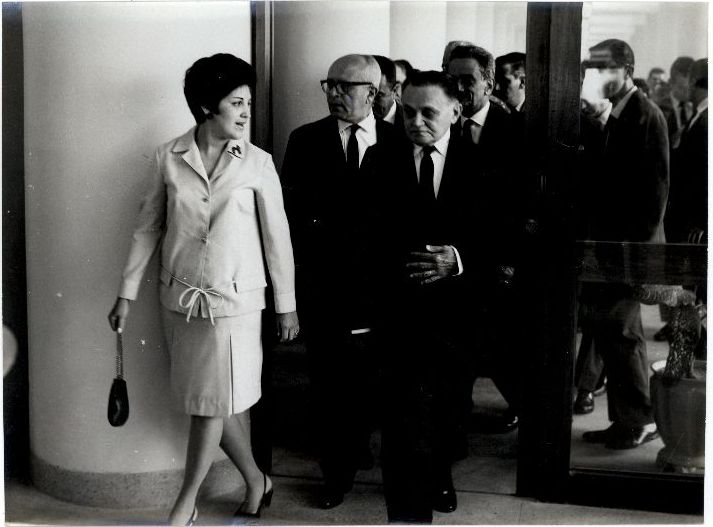 Título: | Presidente Castelo Branco, Reitor Murilo Guimarães e outras personalidades em área interna da Universidade |