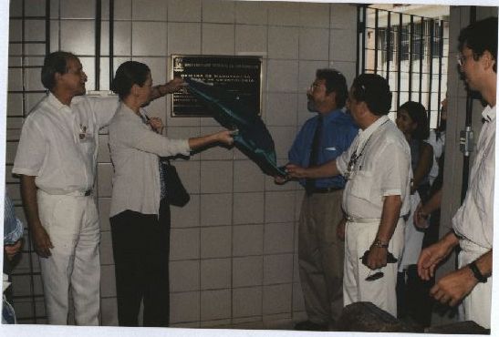 Descripción : | Fotografia em cores onde é possível visualizar personalidades no Hospital das Clínicas no momento de descerramento de placa. No verso da foto consta a seguinte informação escrita à caneta: “HC”. |