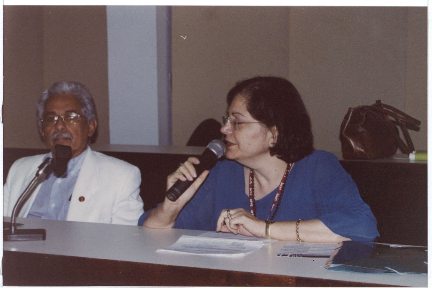 Descrição: | Fotografia em cores onde é possível visualizar Ana Arcoverde em momento de fala ao microfone na mesa diretiva do evento Saber Viver. No verso da foto consta um adesivo da ASCOM com a seguinte informação: "Assessoria de Comunicação Social – UFPE Nome: Ana Arcoverde; Evento/Pessoa: Saber Viver; Fotógrafo: Xavana Celesmah; 13.12.05”. |