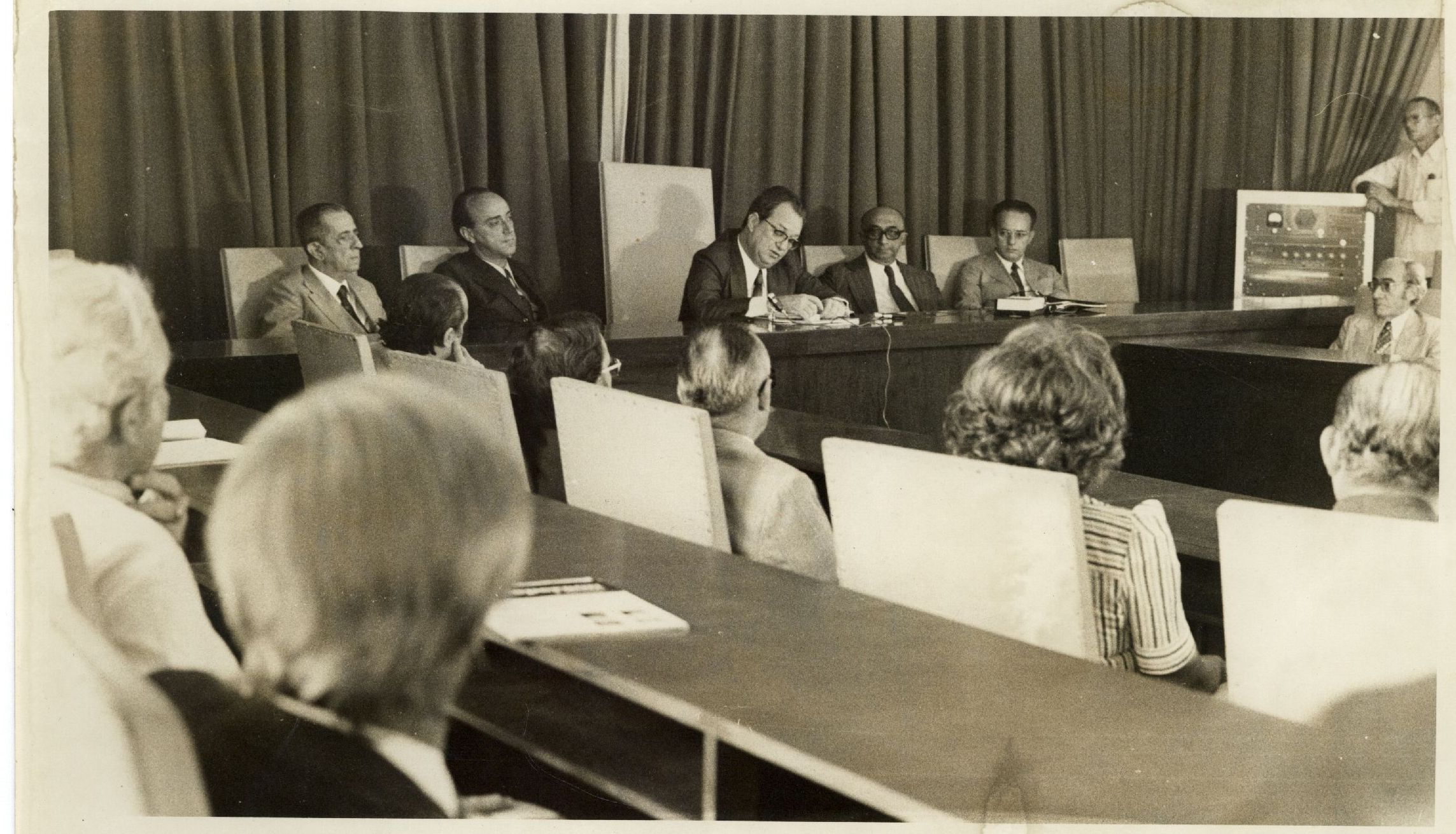 Título: | Reitor Marcionilo Lins e outras personalidades na mesa de honra da Aula Inaugural da Faculdade de Medicina |