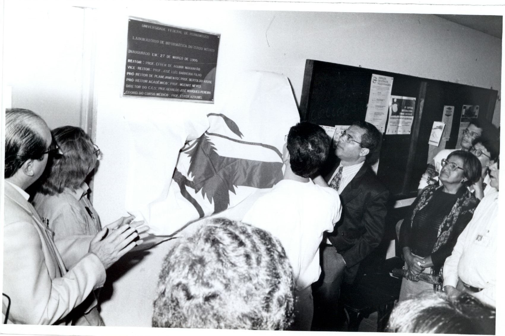 Título: | Reitor Éfrem de Aguiar Maranhão e outras personalidades na inauguração do Laboratório de Informática do Curso Médico |