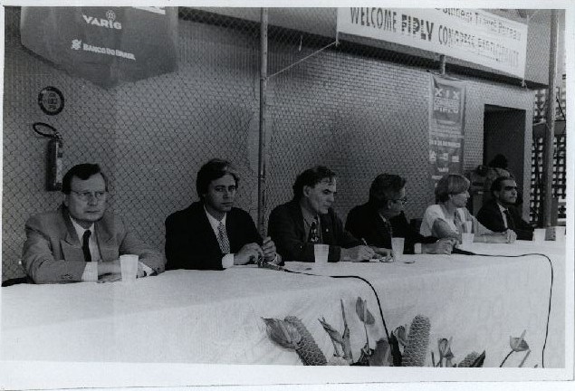 | Title: | Reitor Mozart Neves e personalidades não identificadas em Mesa Diretiva no Congresso Línguas Vivas |