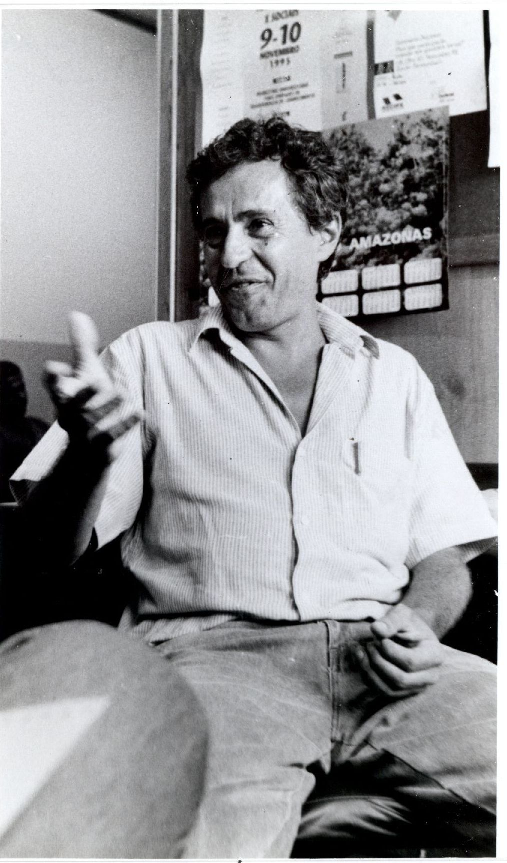 Description: Fotografia em preto e branco onde é possível visualizar Professor Heitor Costa do Núcleo de Apoio a Projetos de Energia Renováveis (NAPER) em momento de explicação. No verso da foto consta a seguinte informação escrita à caneta: "Prof. Heitor Costa, do Núcleo de Apoio a Projetos de Energia renováveis (NAPER)".
