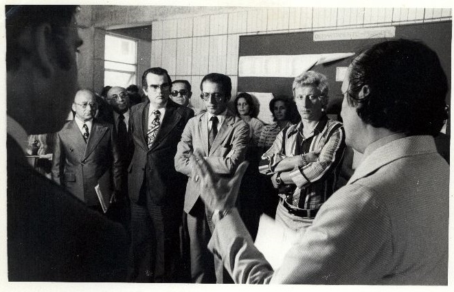 | Descrição: | Fotografia em preto e branco onde é possivel visualizar personalidades não identificadas em momento de reunião na UFPE. |