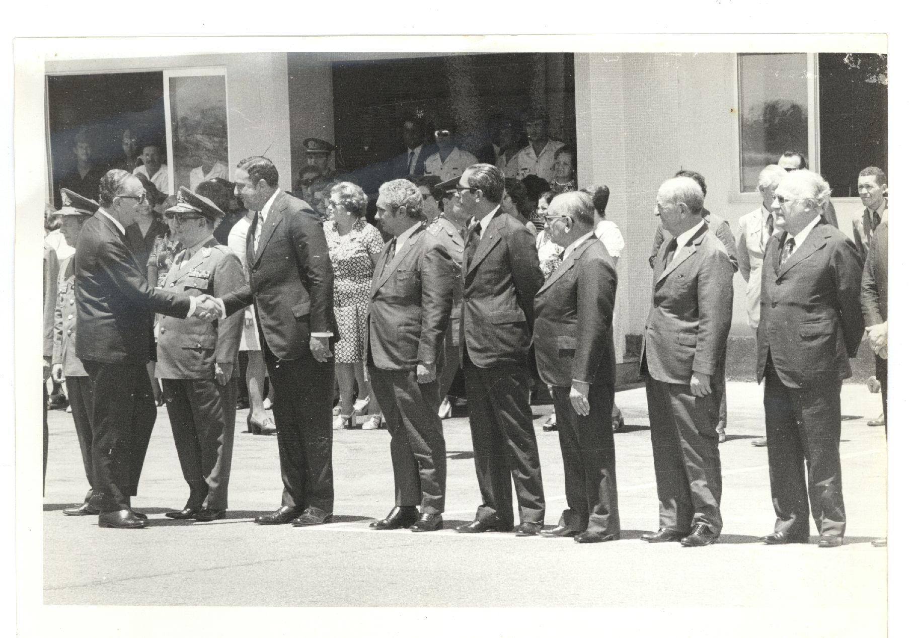 | Description: | Fotografia em preto e branco onde é possível visualizar homens não identificados em momento de cordialidade e aperto de mão. |