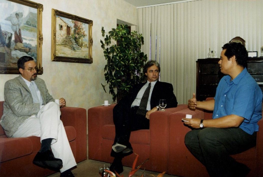 | Descripción : | Fotografia em cores da visita do Cônsul dos Estados Unidos com a participação do Reitor Mozart Borba (no centro). Possui etiqueta adesiva no verso com a seguinte inscrição: “Reitor recebe cônsul E.U.A., Aquiles Lins Nov. 2002.” |