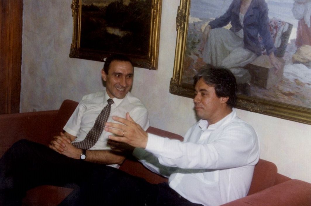 | Description: | Fotografia em cores do Reitor Mozart em conversa com uma pessoa não identificada. |