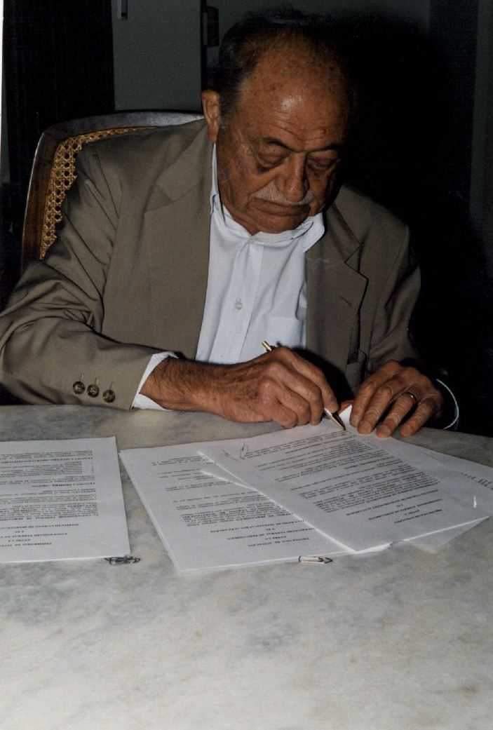 | Description: | Fotografia em cores do Ex-Governador Miguel Arraes (caneta à mão, olhar fixo a documentos que assina) em evento administrativo na reitoria da Universidade Federal de Pernambuco. Título da fotografia: Evento administrativo. |
