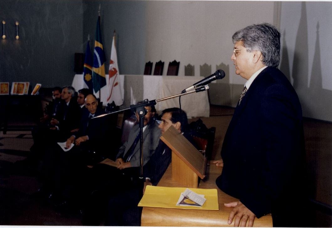 Description: Fotografia em cores com o Ex-Governador Marco Maciel (sentado junto a audiência) em evento administrativo na reitoria da Universidade Federal de Pernambuco. Título da fotografia: Evento administrativo.