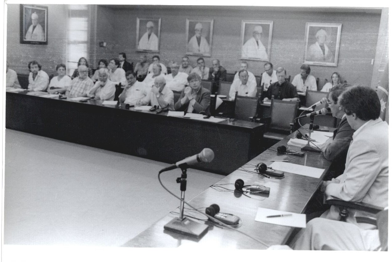 | Descripción : | Várias pessoas sentadas, lado a lado, numa mesa comprida. Três fileiras de mesas, uma atrás da outra, com pessoas sentadas. Na ponta direita da foto, um grupo de homens sentados, lado a lado, numa mesa com papéis, copos e microfones espalhados, os mesmos falam para as pessoas que estão nas outras três mesas, enquanto essas pessoas observam. Com a nova organização do GR, essa caixa permaneceu GR 2EE, atualização feita em 30/07/15. No verso da fotografia há a seguinte informação escrita à caneta "Universidades européias p/ avaliação da UFPE". |