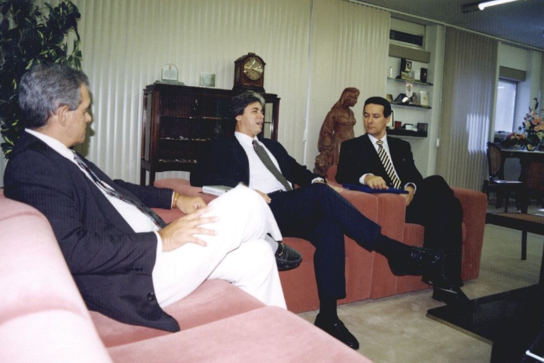 Título : Três homens sentados conversando no Gabinete do Reitor